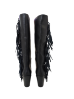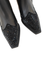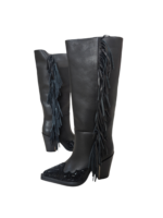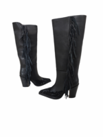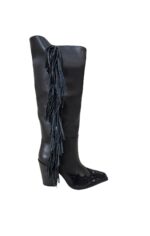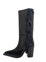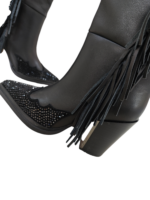 Tipo cowboy, con puntera con brillos y flecos de piel laterales en la caña