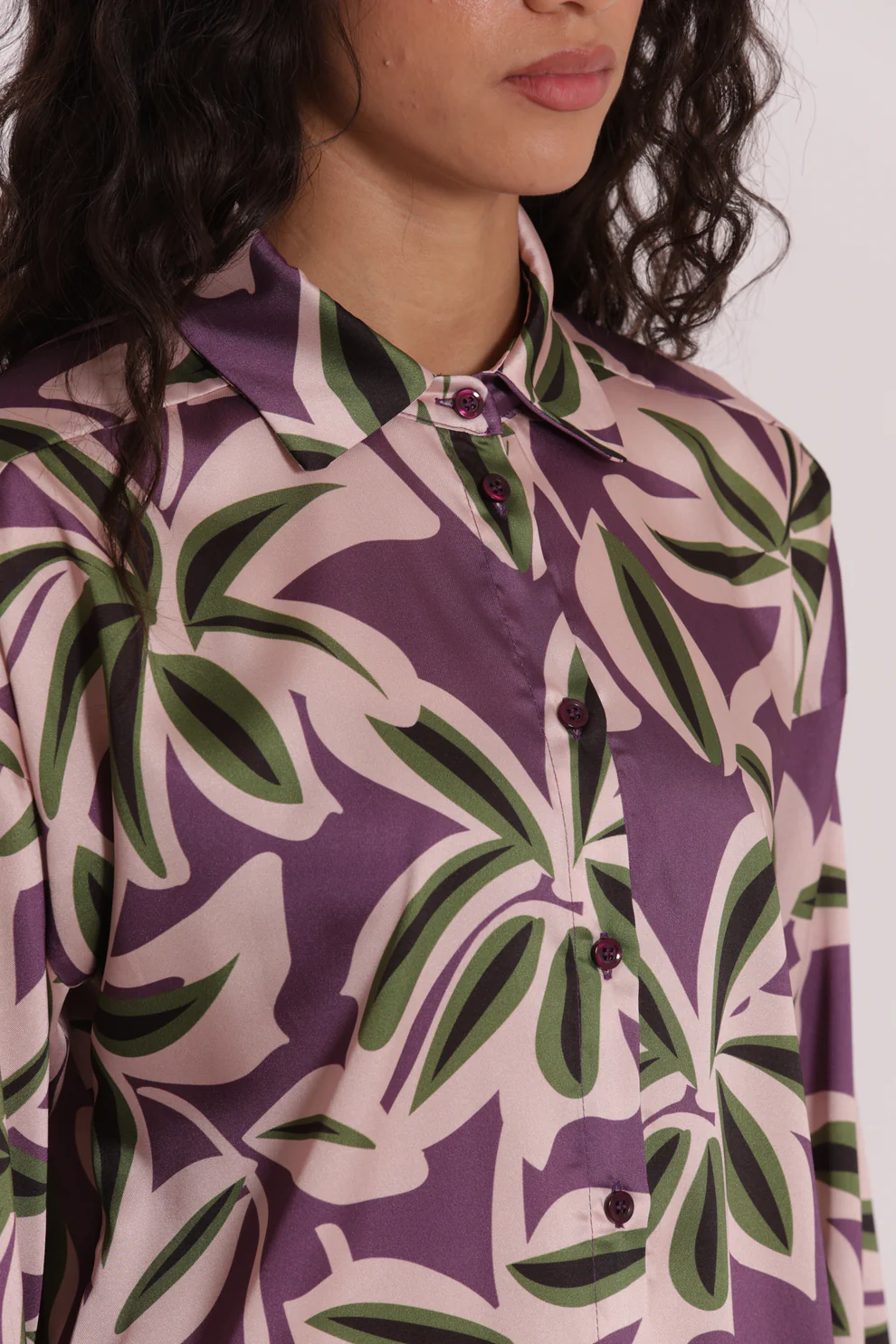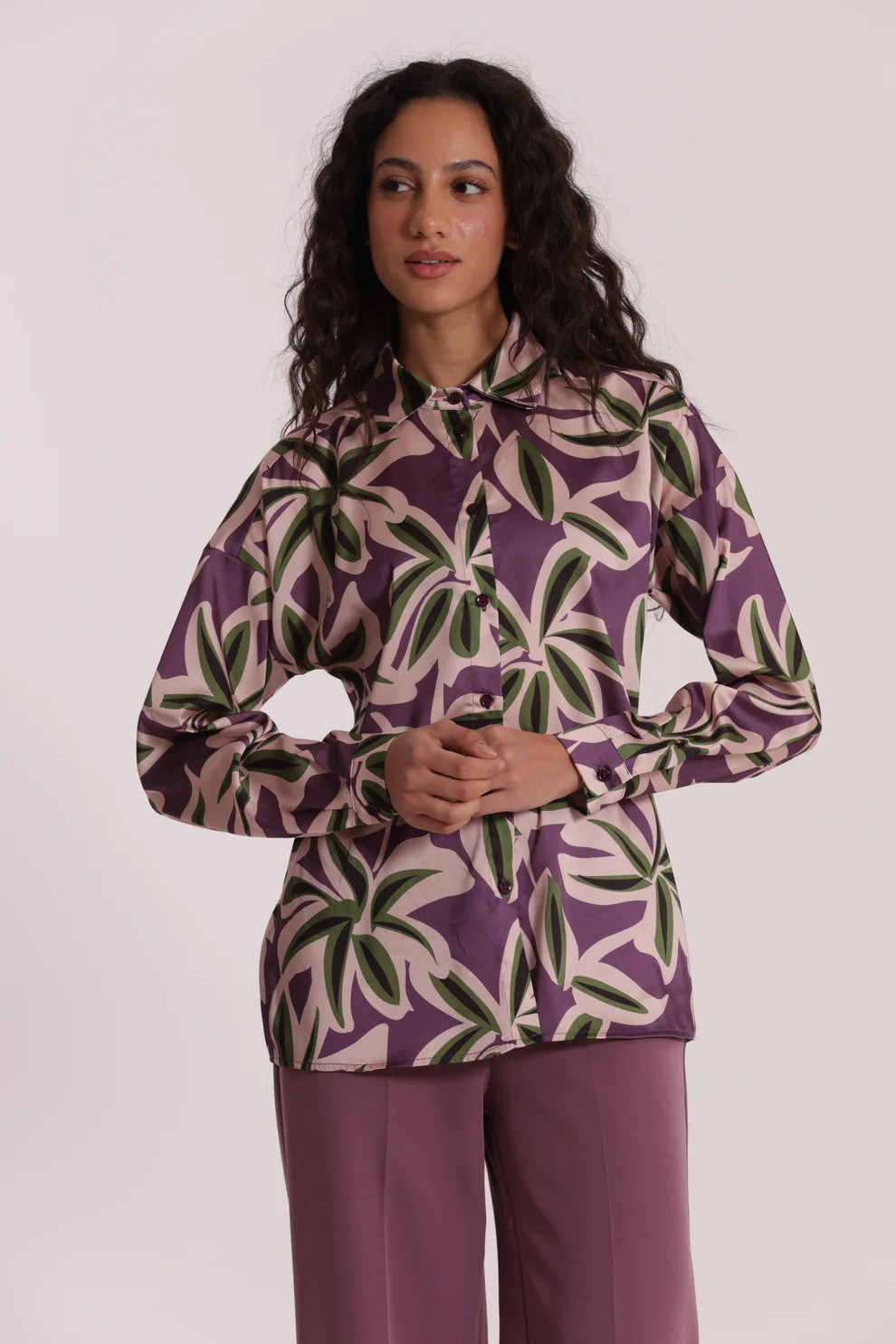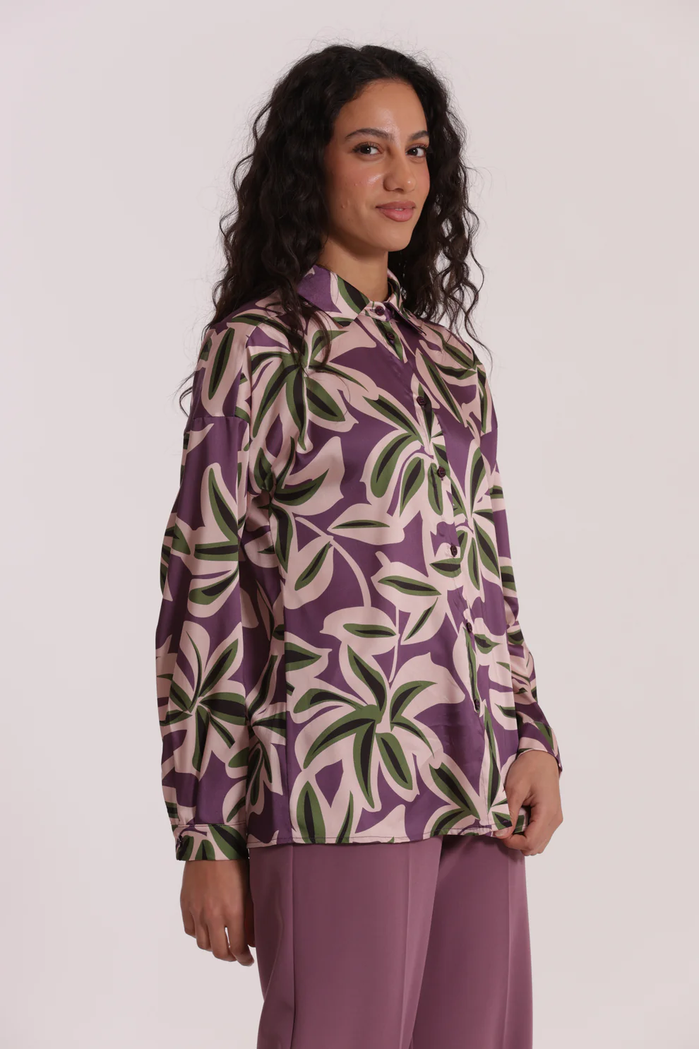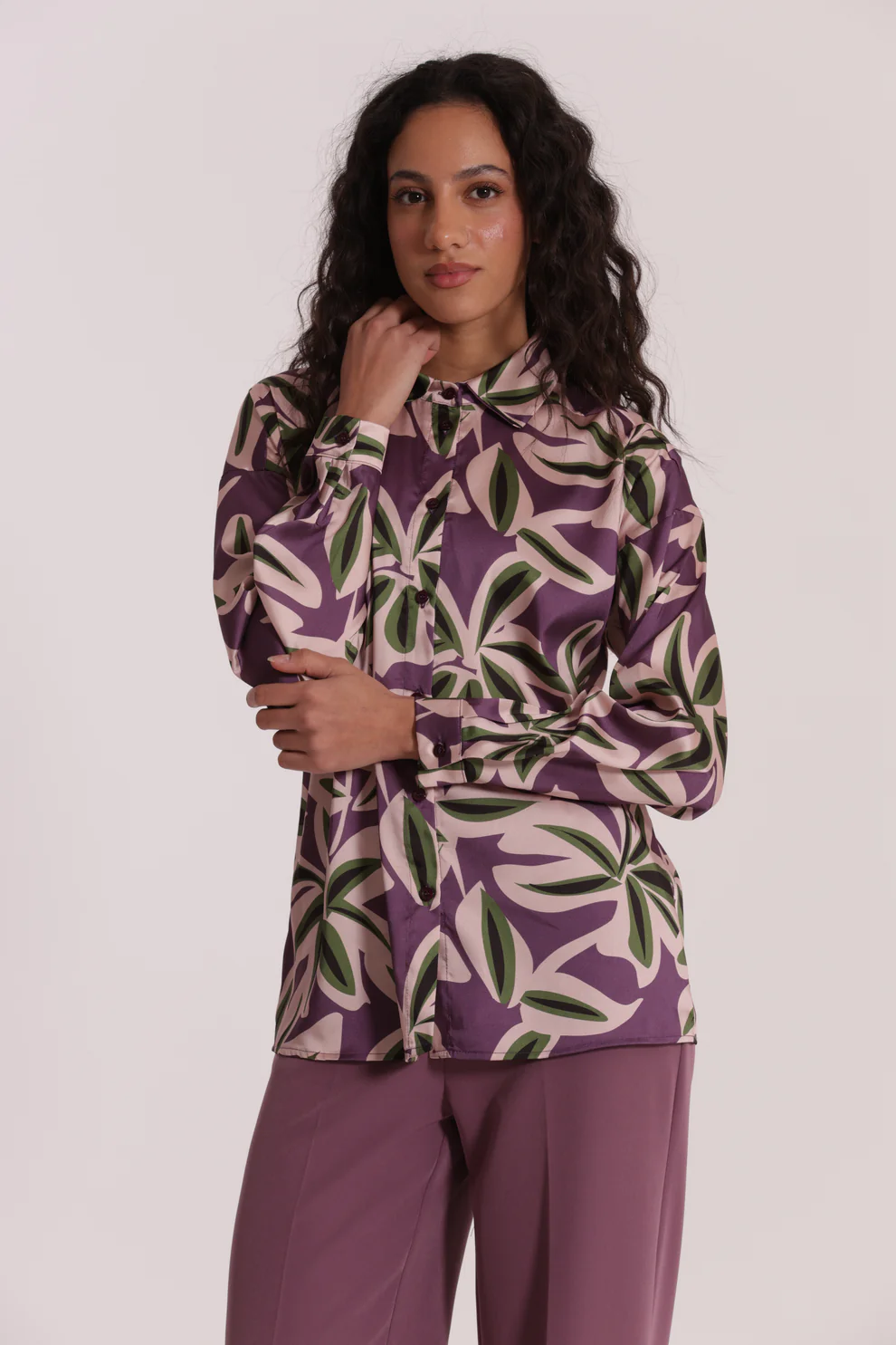 Camisa estampada de flores con los colores de la temporada, ideal para combinar con nuestros pantalones flowers y hacerte un total look muy chic y moderno.