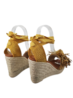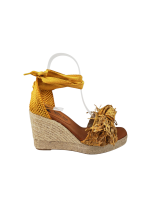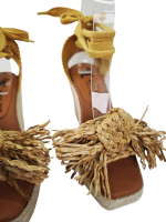 Cuña mixta de algodón trenzado y Elástico, forro en piel, con suela de goma y plataforma de yute