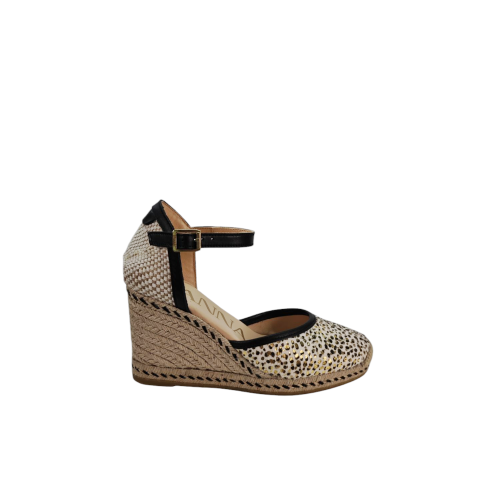 Cuña mixta de algodón trenzado y Elástico, forro en piel, con suela de goma y plataforma de yute