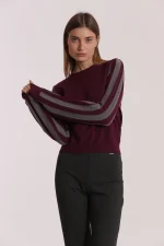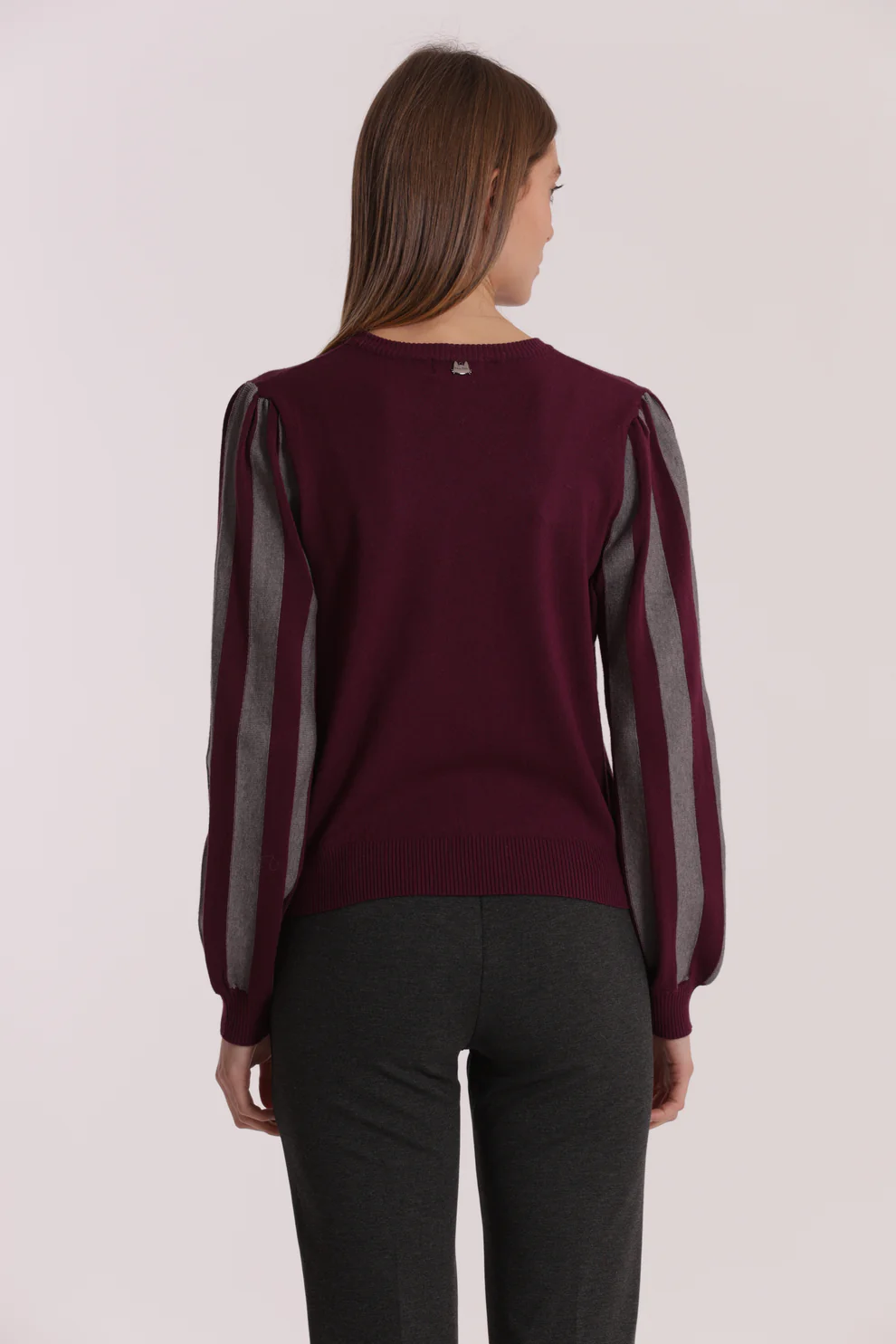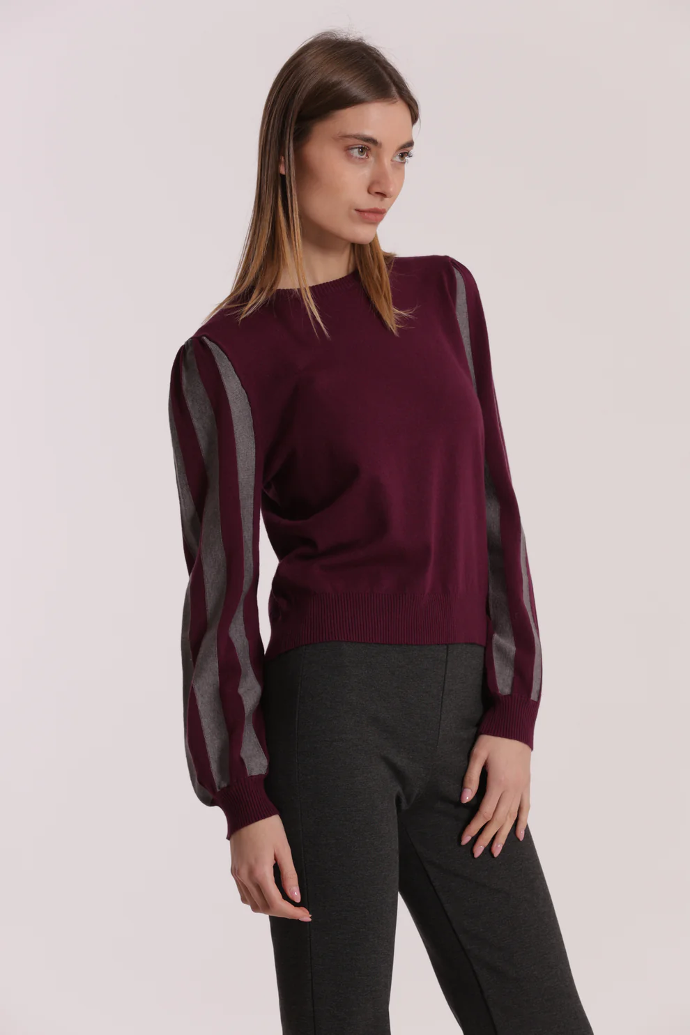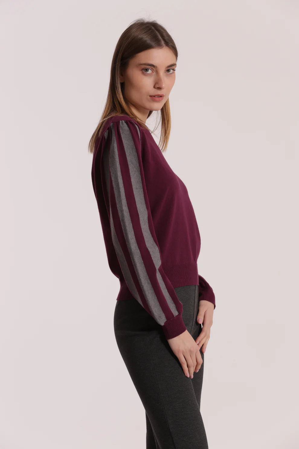 Jersey de punto en el color de la temporada con detalle de rayas grises en las mangas, este jersey es ideal para combinarlo con nuestro pantalón de raya diplomática TRITÓN.