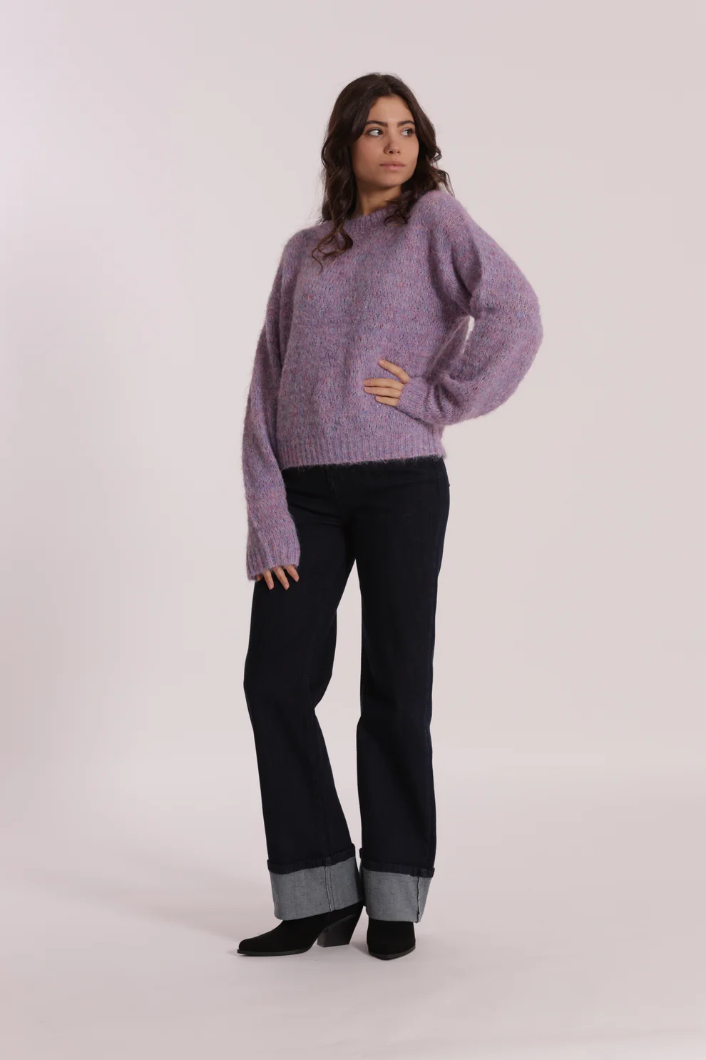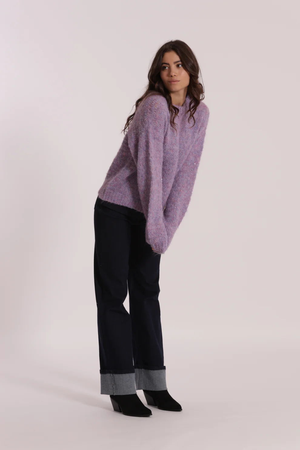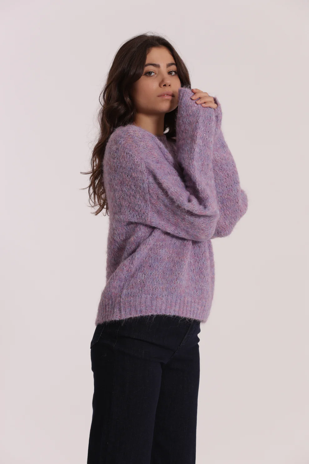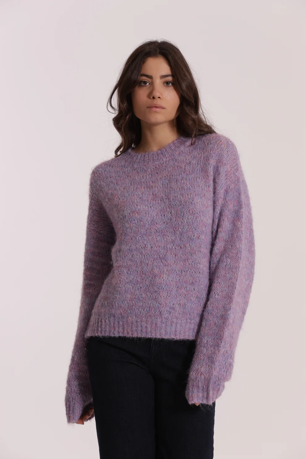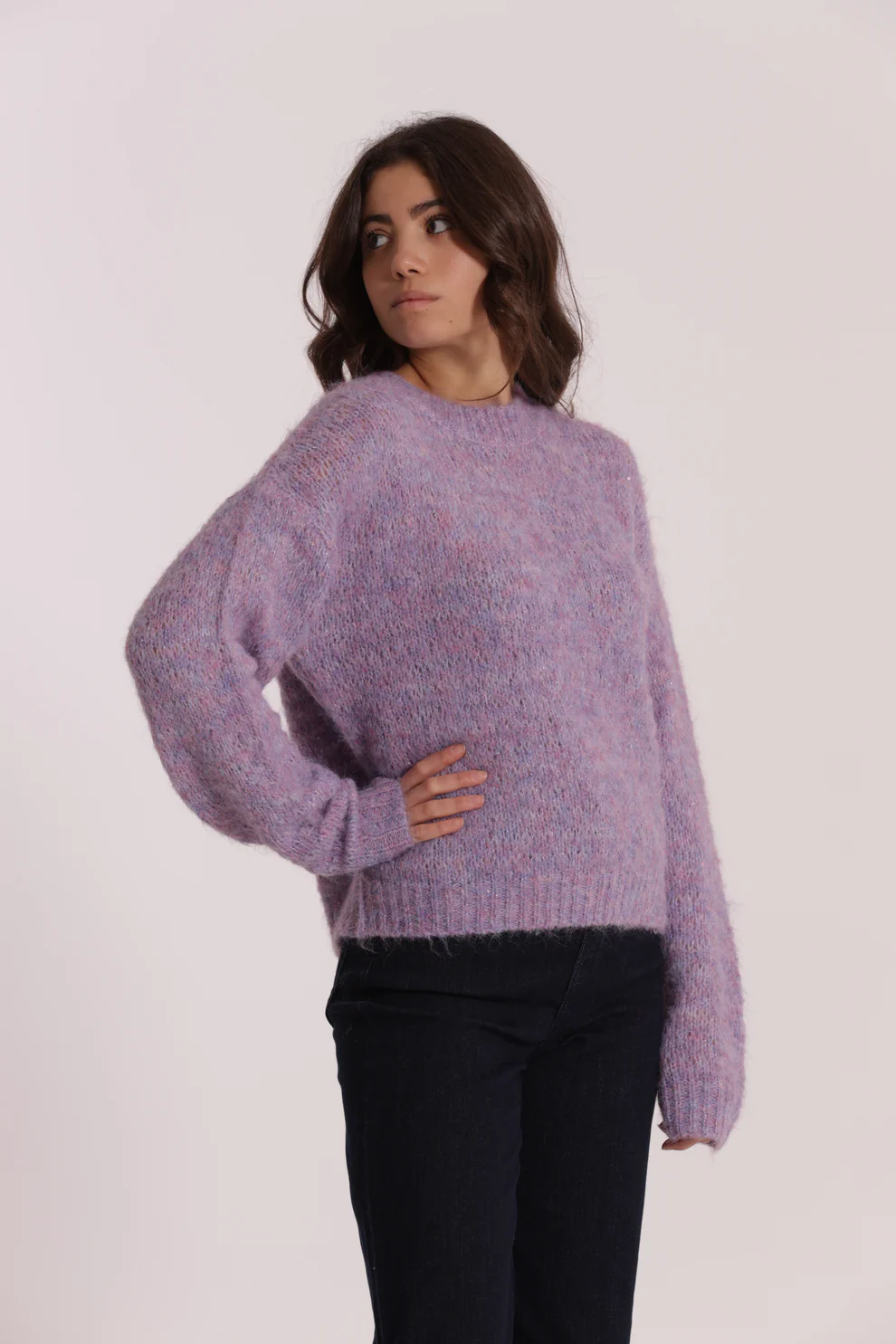 Jersey de punto en color malva con detalle de lentejuelas, muy gustosito ideal para la temporada otoño/invierno.