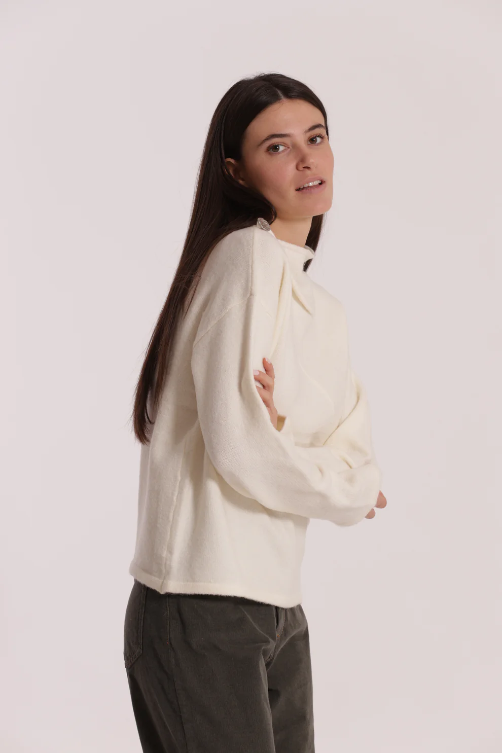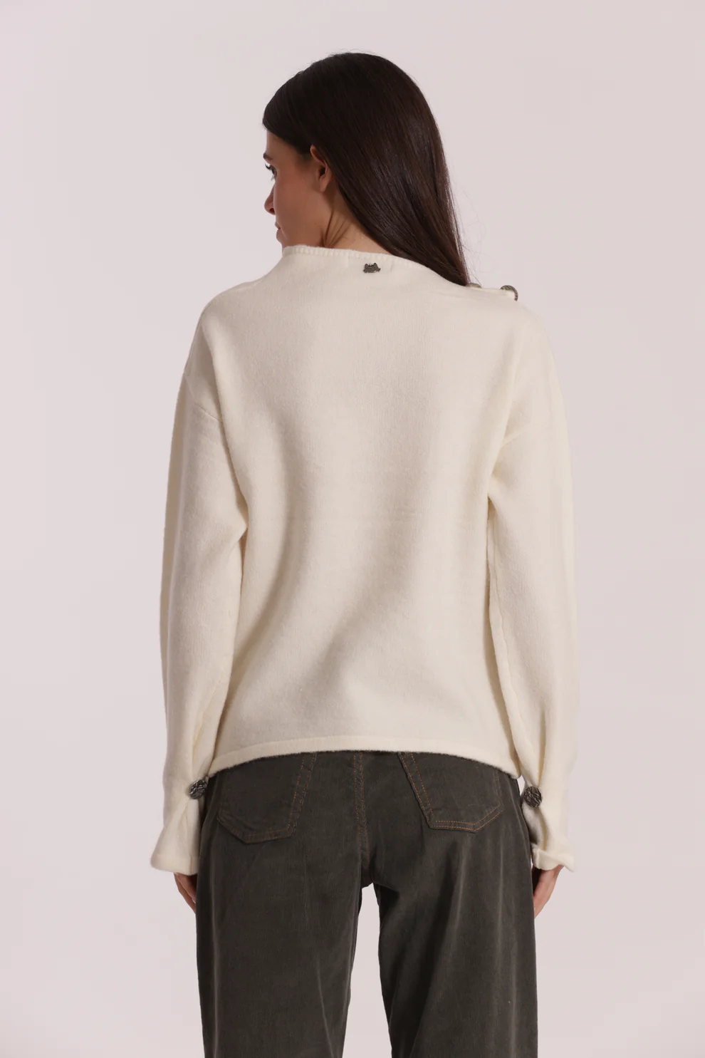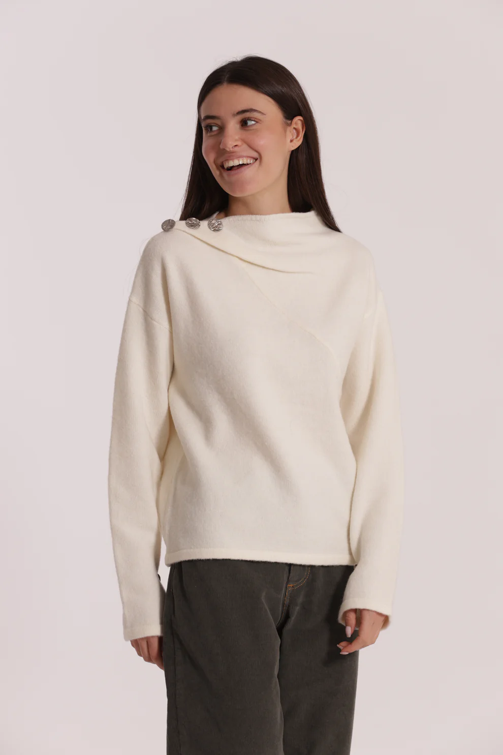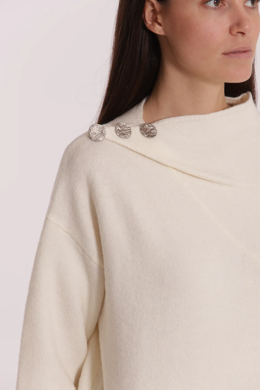 Jersey de punto muy gustoso con detalle de moneditas en uno de los hombros, ideal para los días de frío que tiene esta temporada de otoño/invierno.