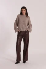 Pantalón corte wide leg, efecto piel en el color de la temporada, ideal para un look sofisticado y moderno.