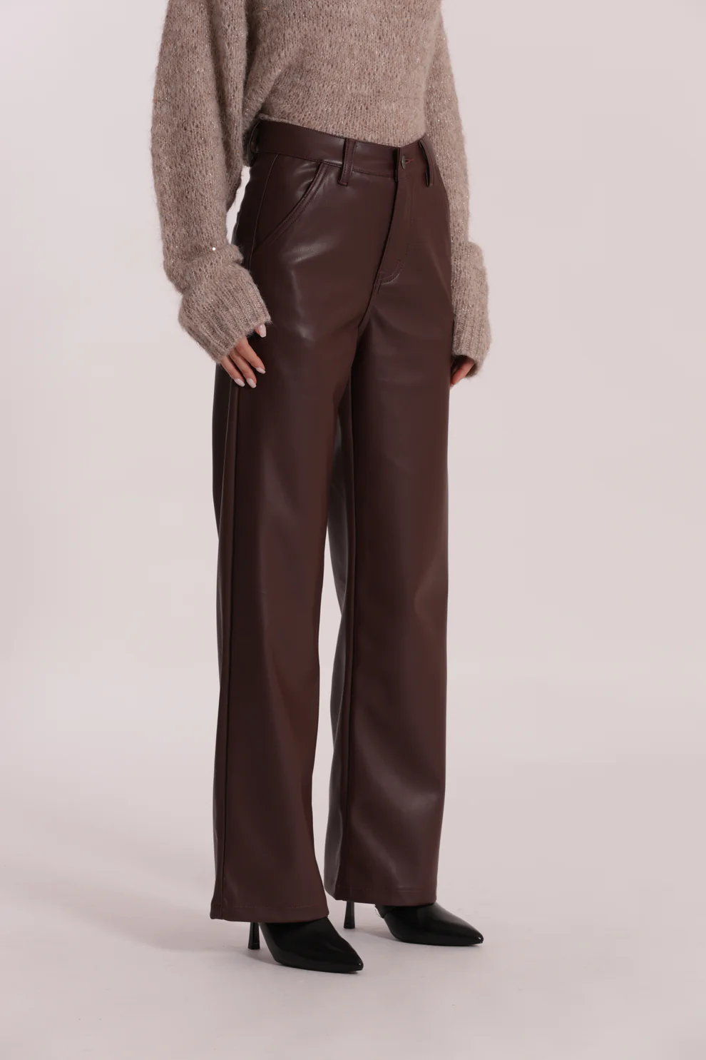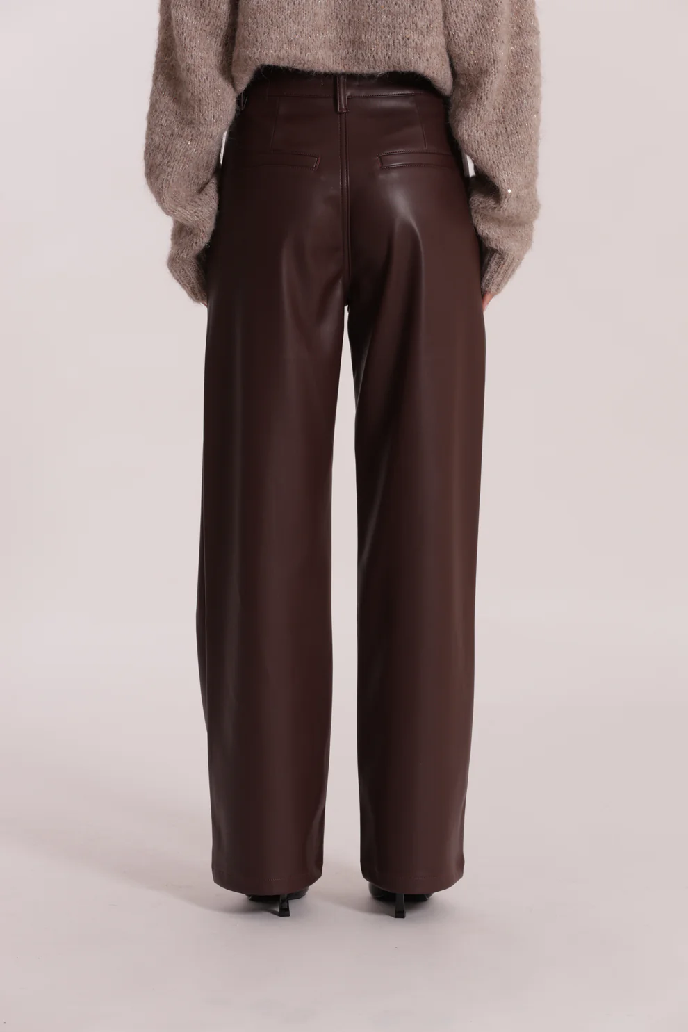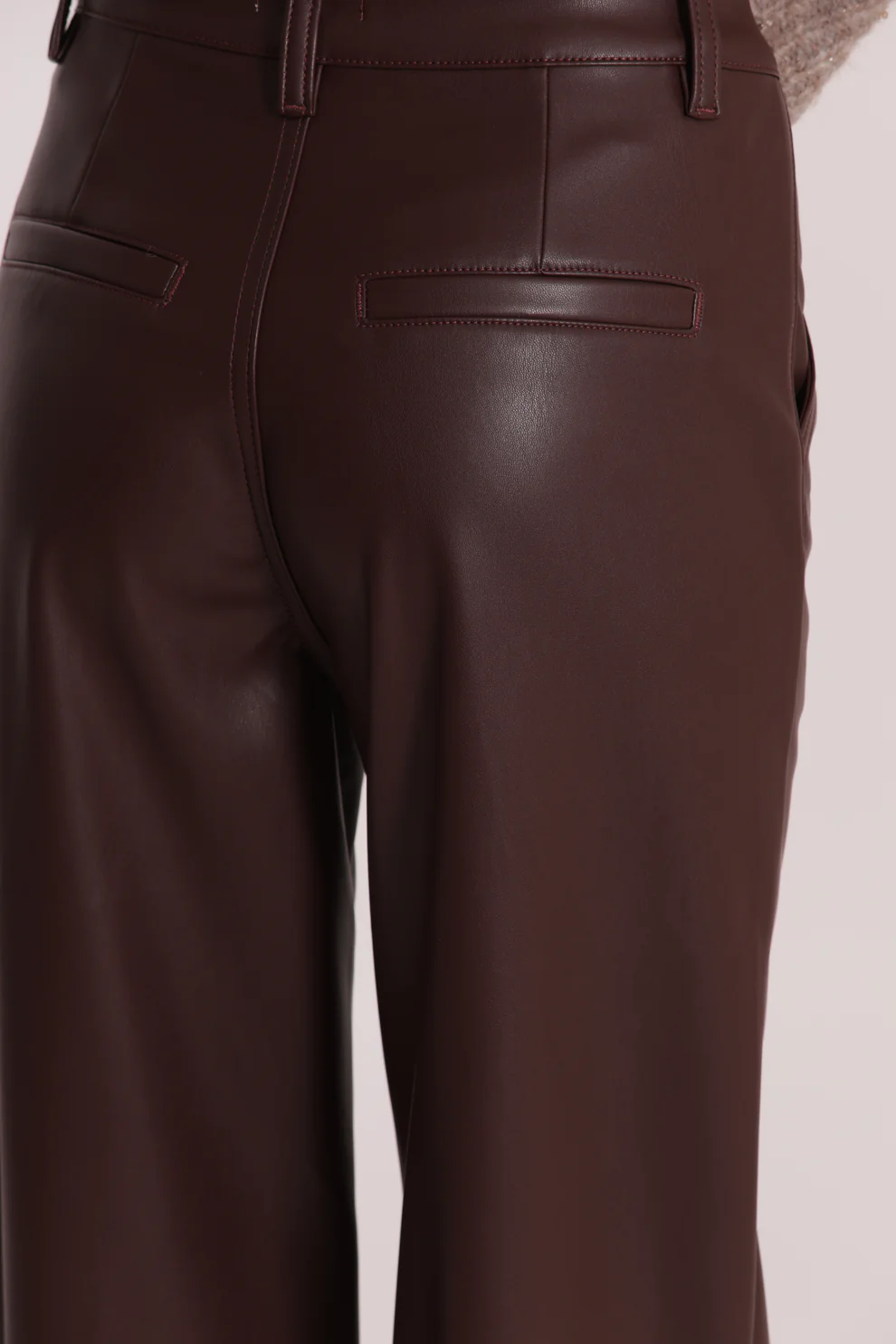 Pantalón corte wide leg, efecto piel en el color de la temporada, ideal para un look sofisticado y moderno.