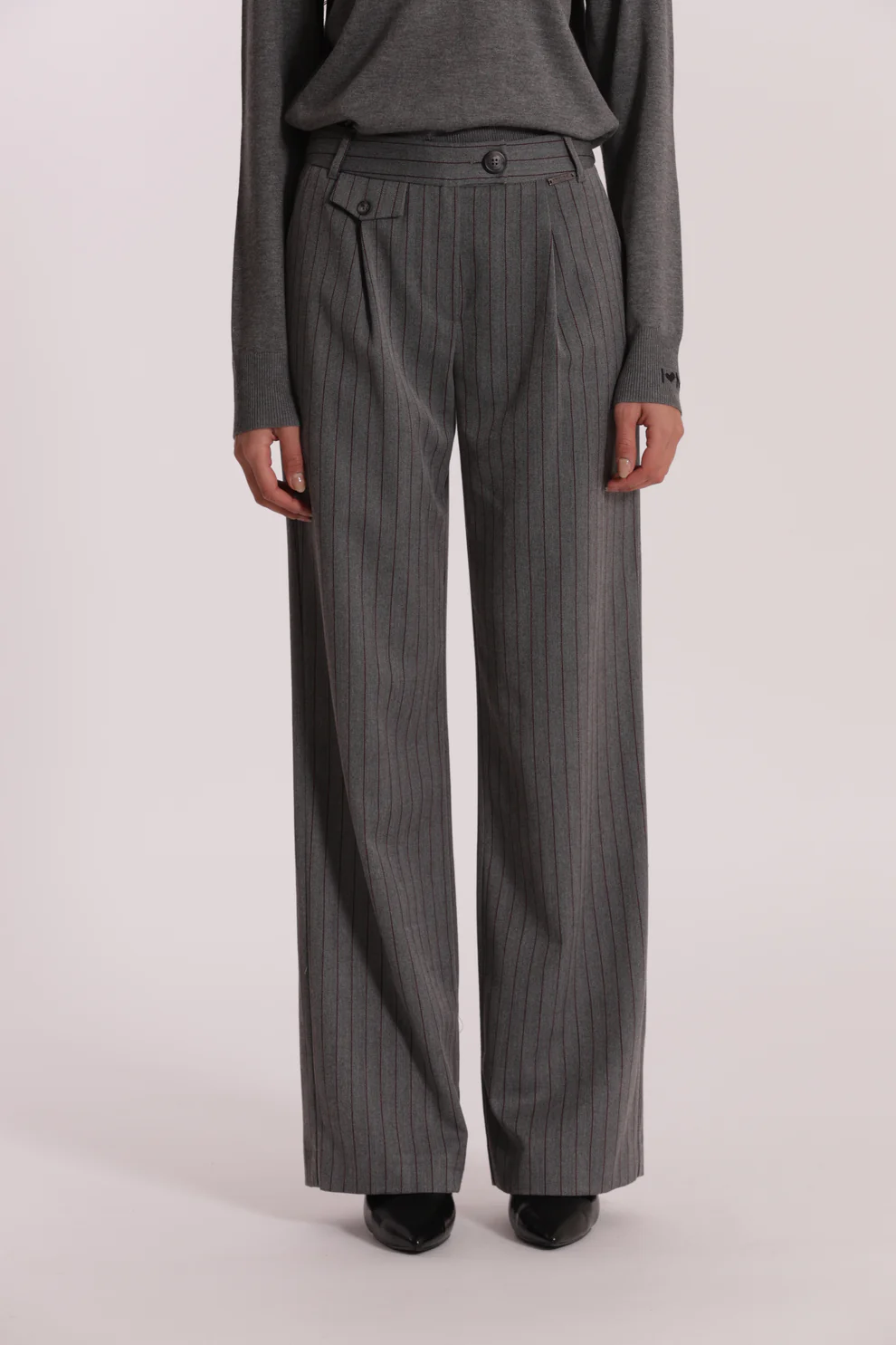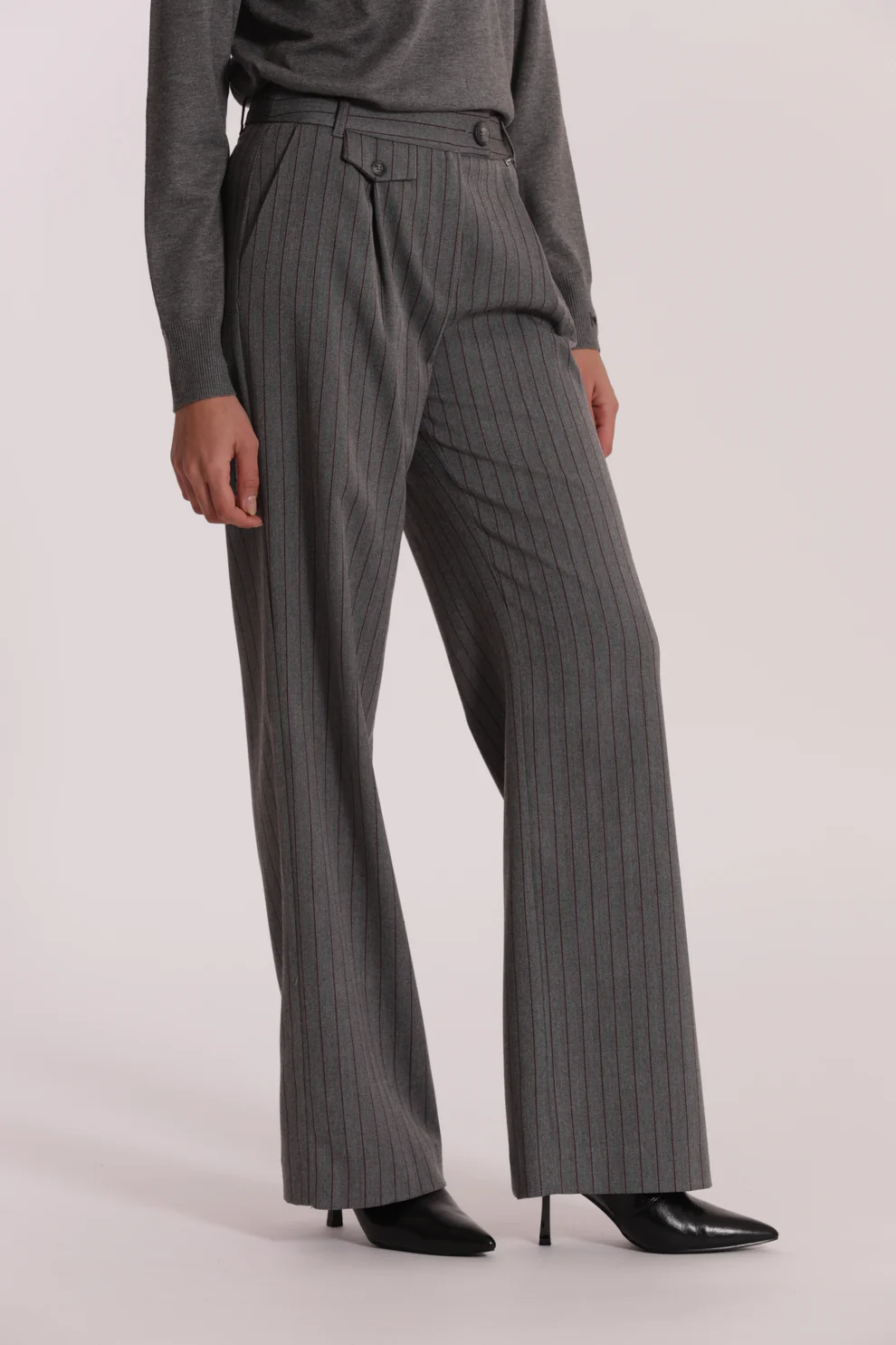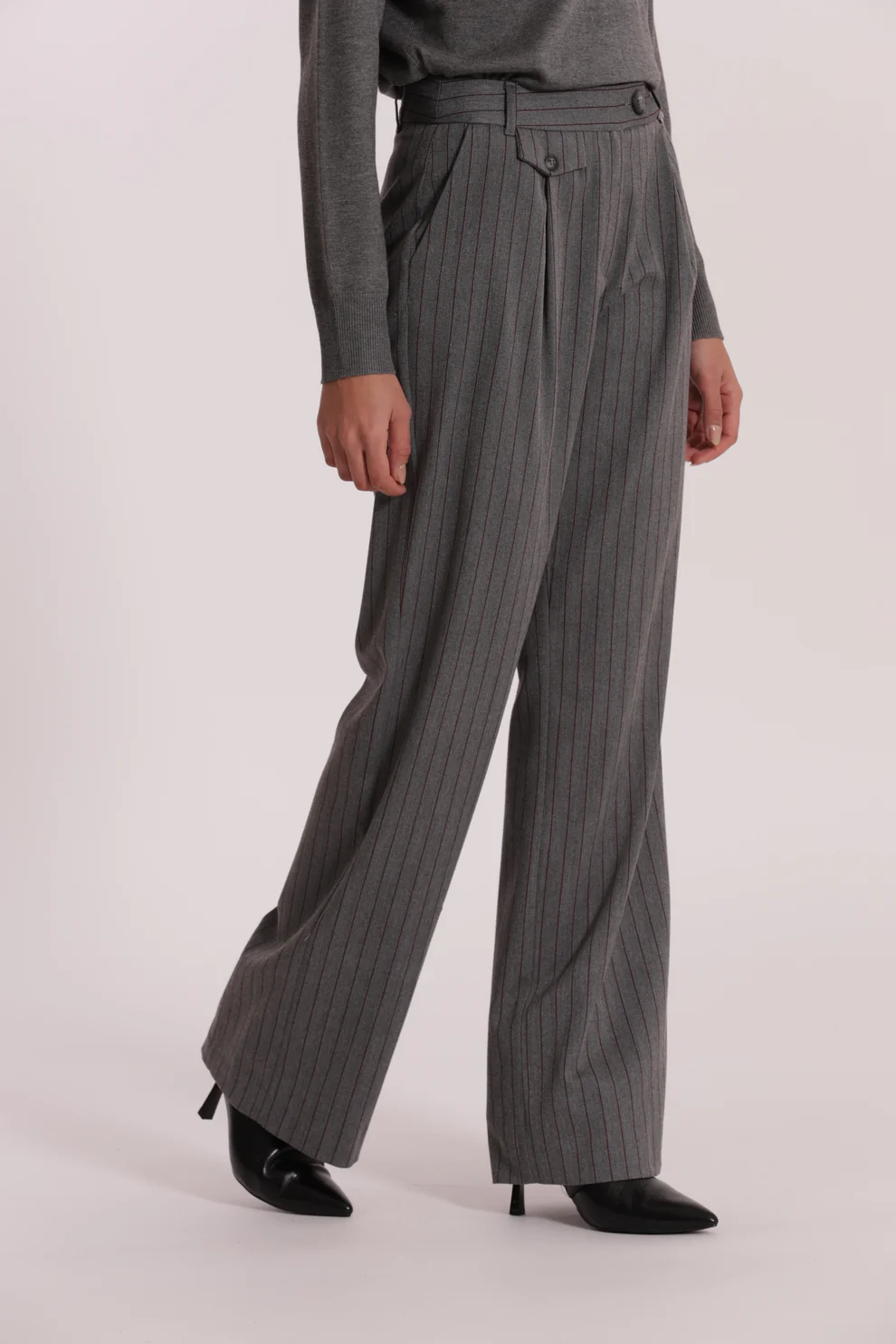 Pantalón corte wide leg y detalle de raya diplomática, es ideal para combinarlo con nuestro jersey ARIEL.