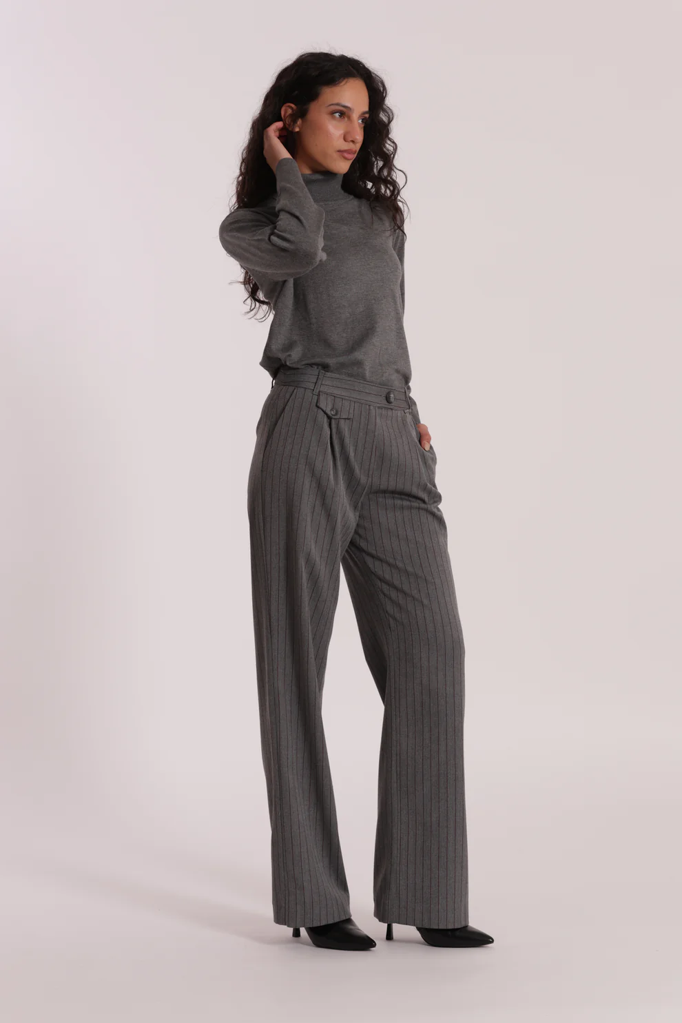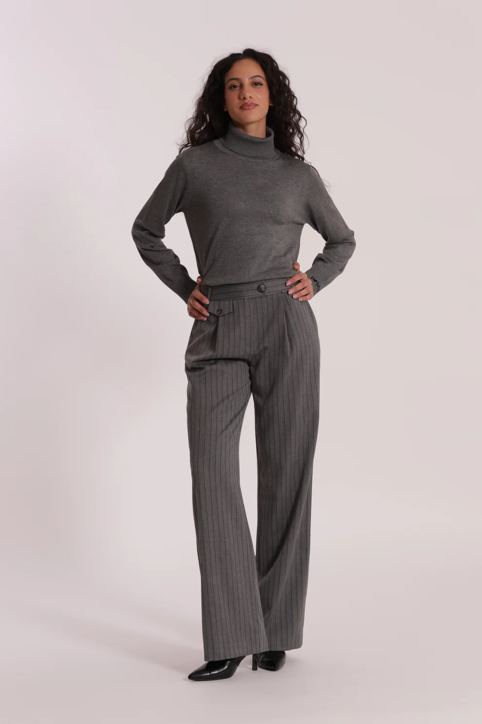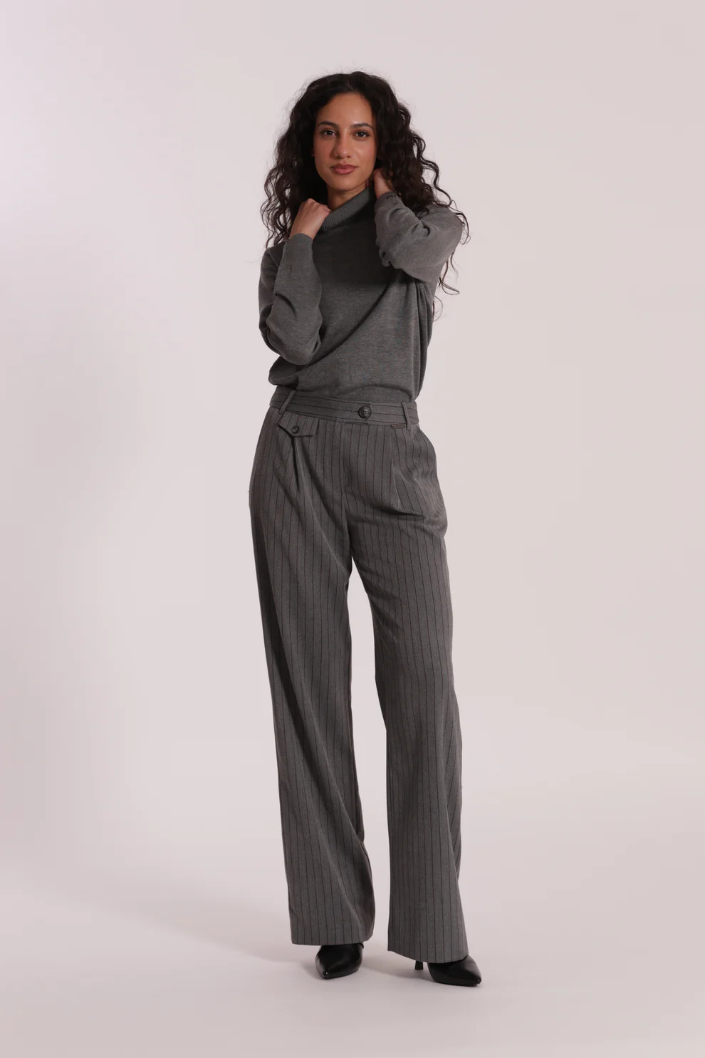 Pantalón corte wide leg y detalle de raya diplomática, es ideal para combinarlo con nuestro jersey ARIEL.