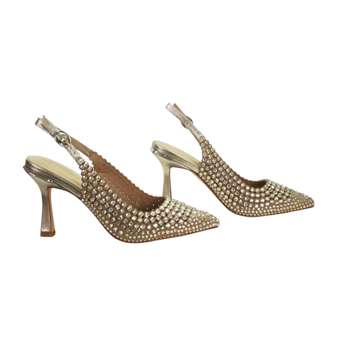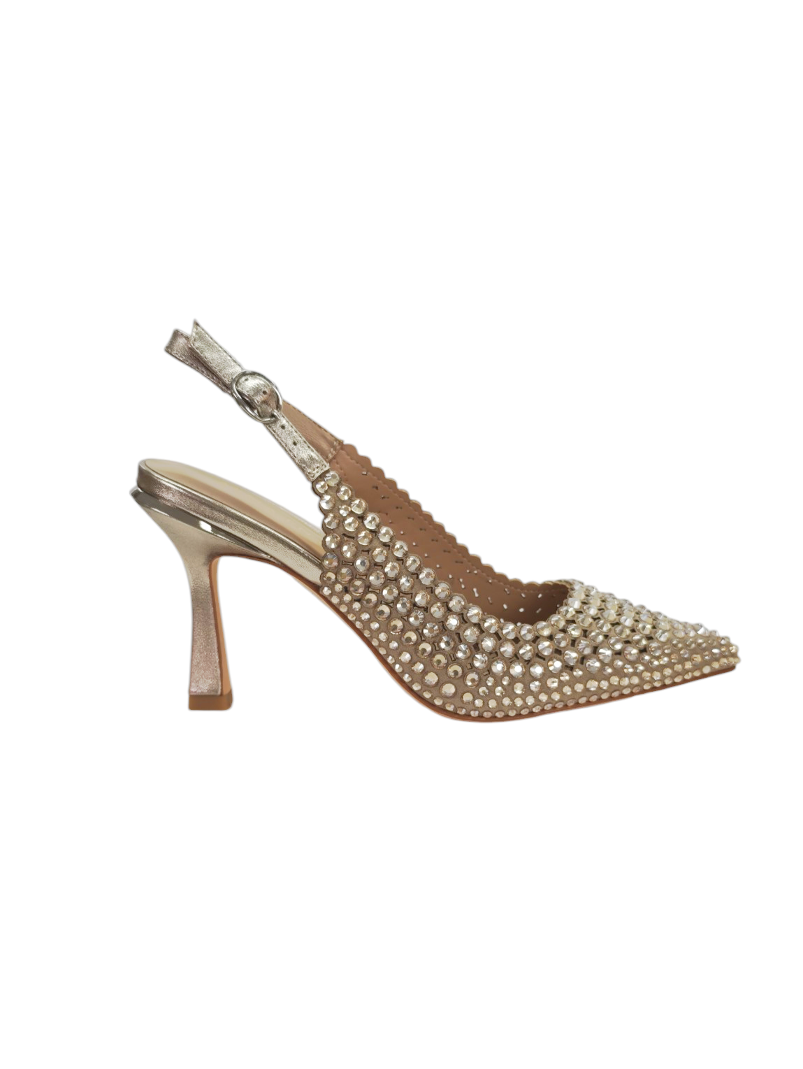Su silueta afilada estiliza el pie, mientras el tacón alto y refinado aporta altura con equilibrio. La pulsera trasera ajustable garantiza sujeción y comodidad, convirtiéndolo en el aliado perfecto para bodas, eventos especiales o noches donde quieres ser inolvidable.