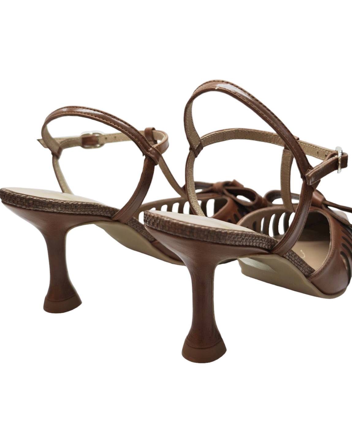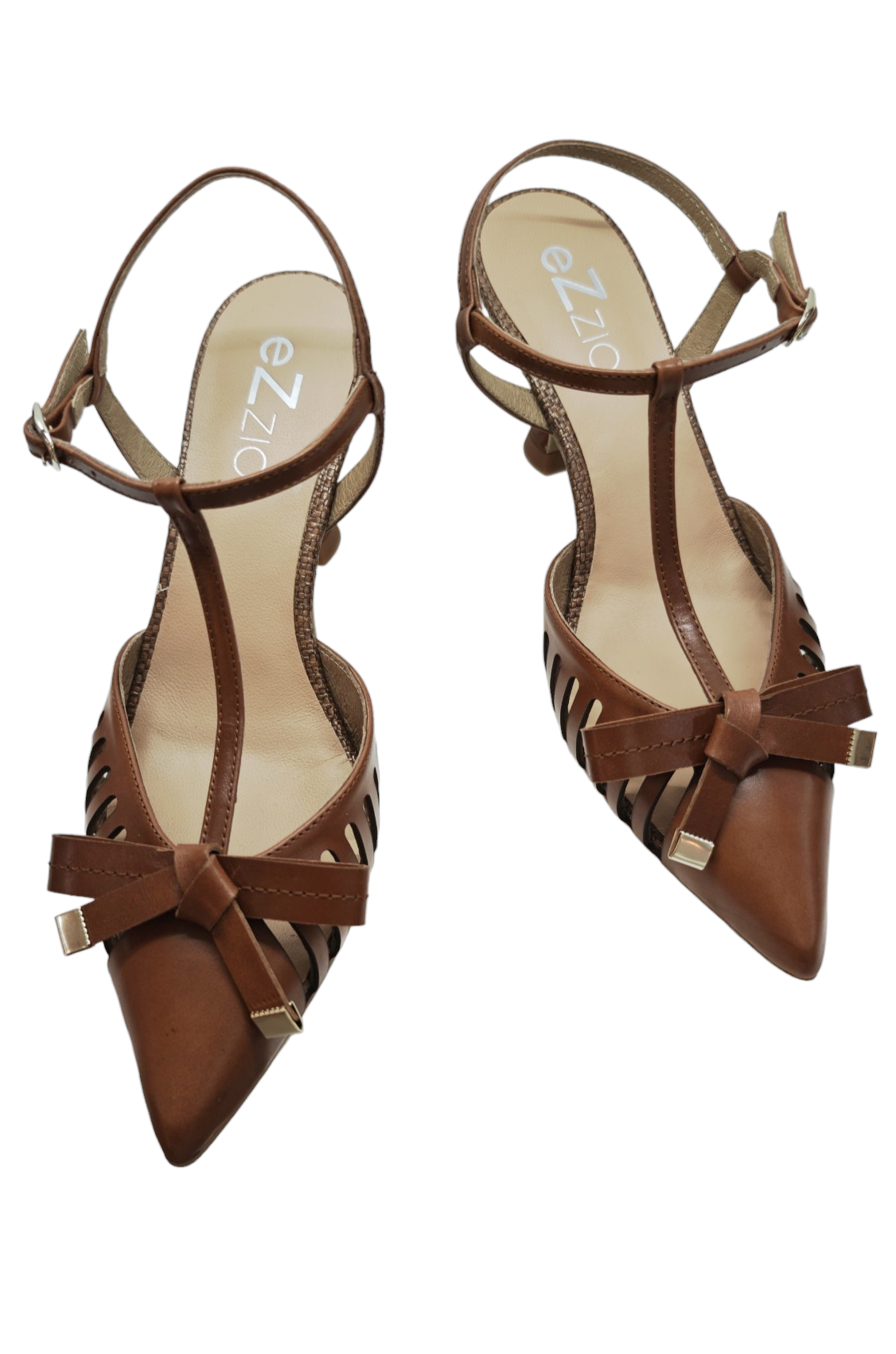 Una pieza que combina delicadeza y diseño contemporáneo. Este slingback en tono caramelo destaca por su silueta estilizada y su refinado juego de líneas que envuelven el pie con elegancia.