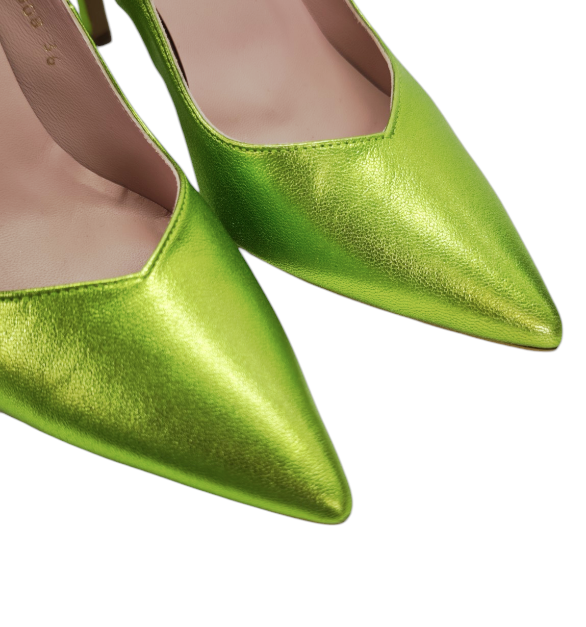 El color es un verde lima metalizado, vibrante, casi eléctrico. No es un verde discreto, es un verde que habla. Que dice: “he llegado”. El acabado tiene un brillo satinado que capta la luz y la devuelve como si fuera joyería líquida.