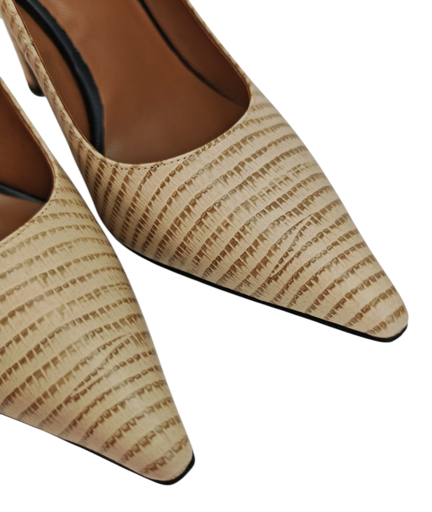 Tacón alto de 9 cm  y punta afilada para estilizar al máximo, pensado para mujeres que no temen ser el centro de todas las miradas. Porque con estos zapatos… imposible pasar desapercibida. 🐆✨
