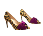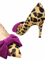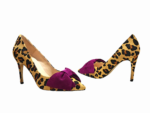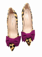 Salón MAYA, atrevido y cañón, en ANIMAL  PRINT, con una piel de pelito y una lazada en buganvilla deal para todos tus outfit,  con un tacón estilizado