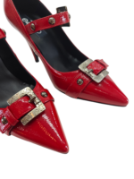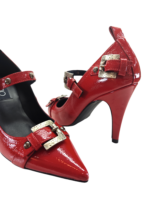 El aire pop de los 80 reflejado en este modelo, hebillas plata vieja y color puntero hacen de el, un modelo