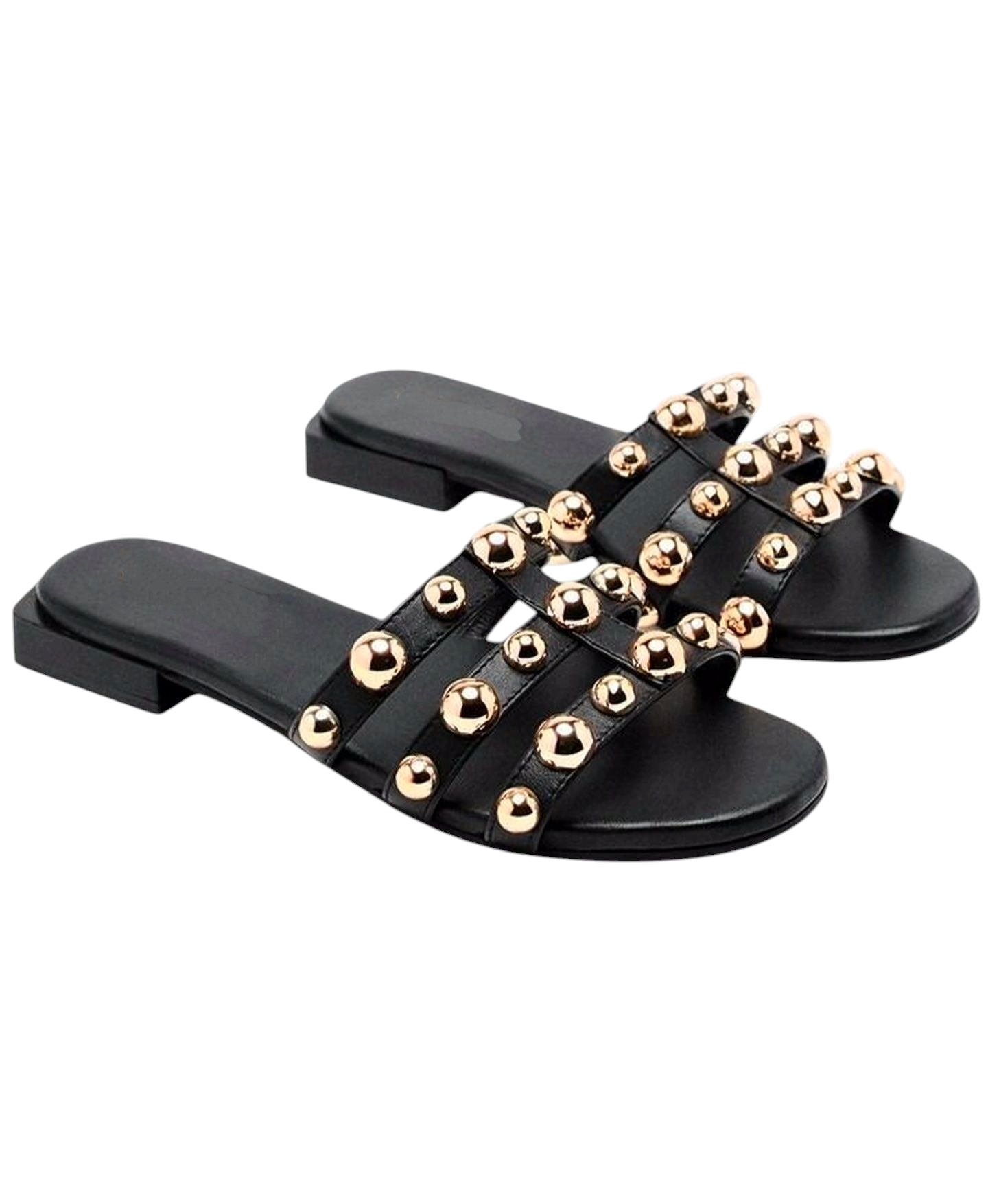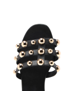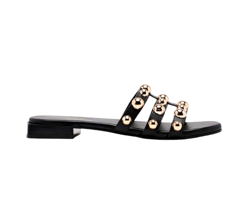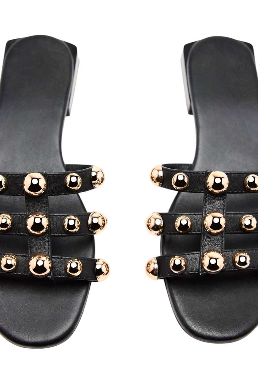 Sandalias planas tipo palas de piel con adorno de tachas. Cuentan con planta acolchada de piel.