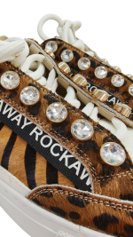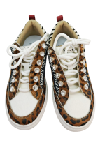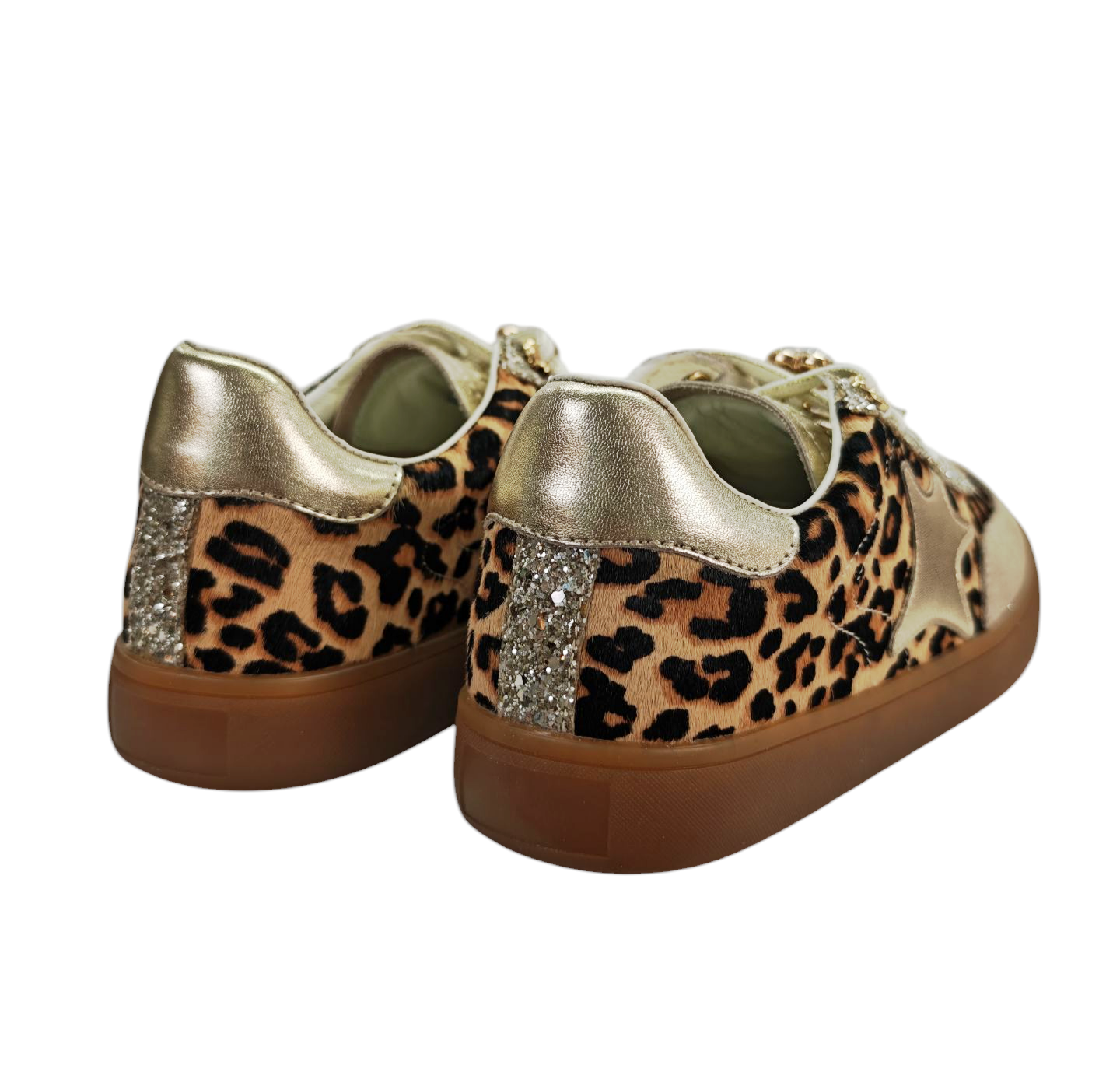 Atrévete a brillar con estos sneakers salvajes & glam. El animal print en leopardo se une al dorado metalizado y al glitter para crear un combo explosivo que grita poder femenino y actitud sin filtros. Los maxi-brillos en los cordones ponen la guinda perfecta para que cada paso sea un auténtico show.