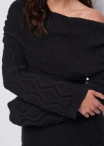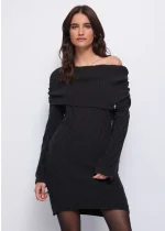 Minivestido de mezcla de lana y escote con hombros descubiertos y puños de canalé maxi.