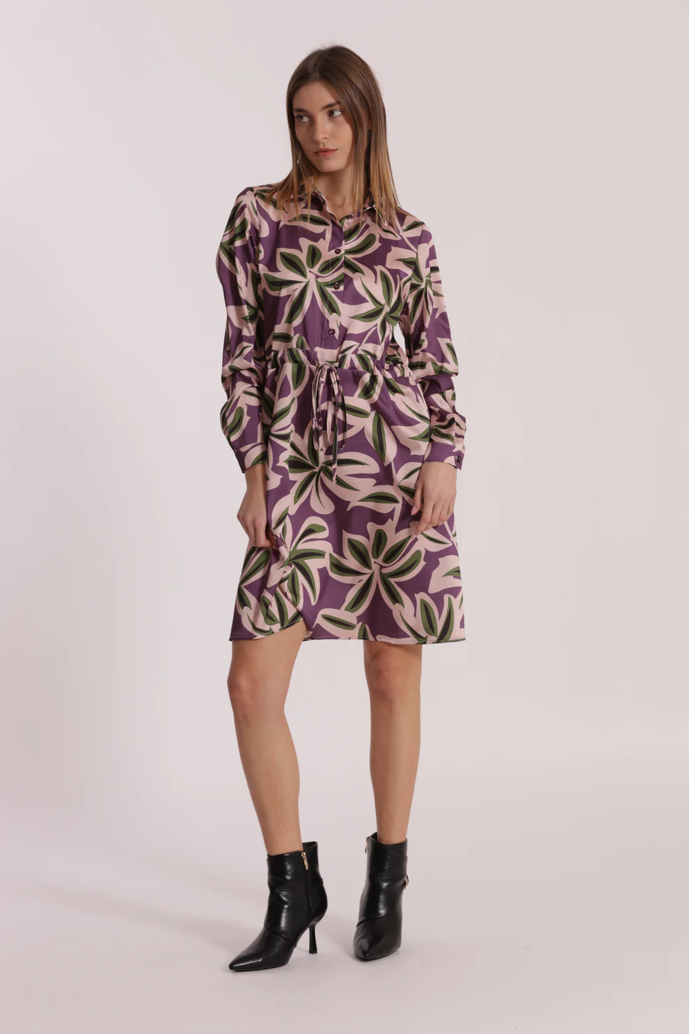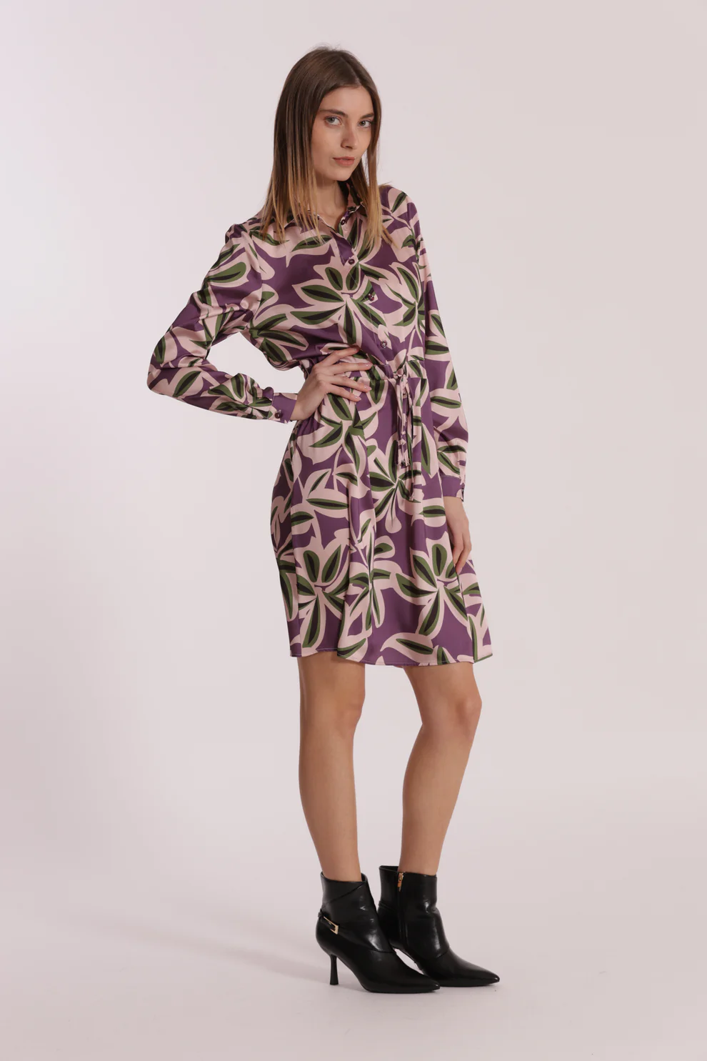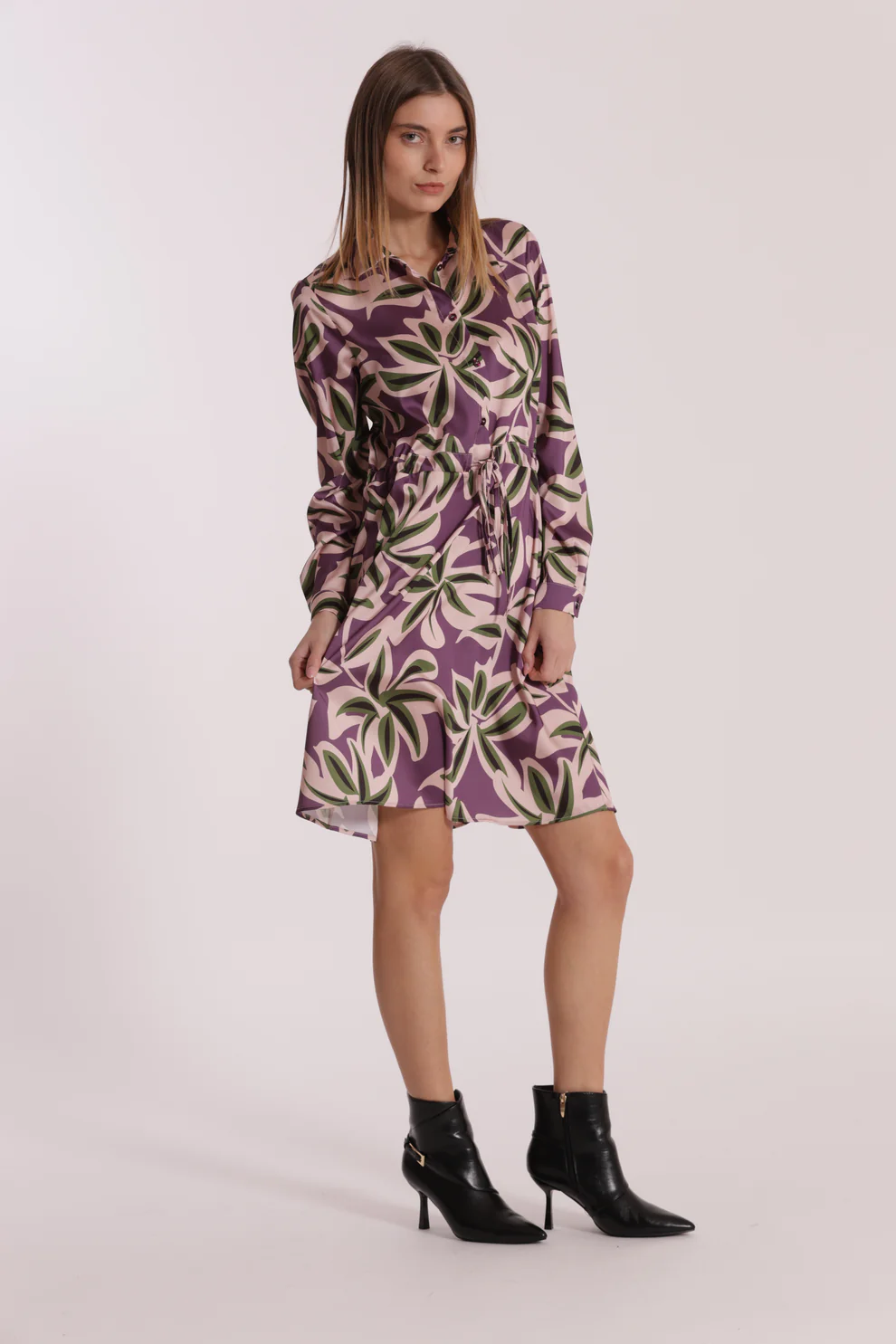 Vestido camisero con estampado de flores, abotonado y con lazo en la cintura para ajustarlo.