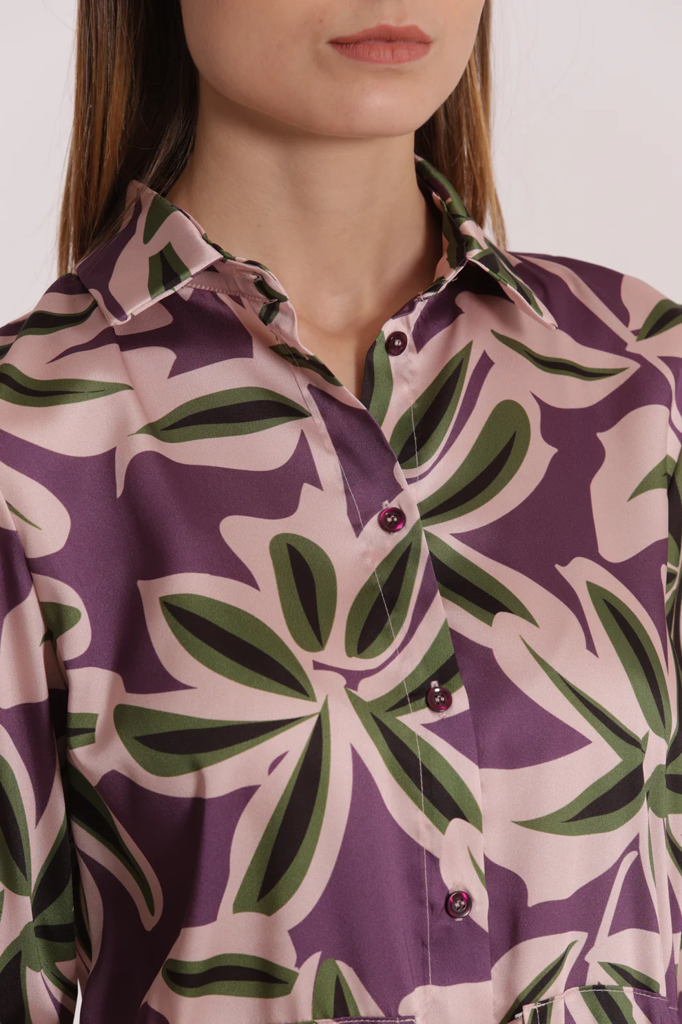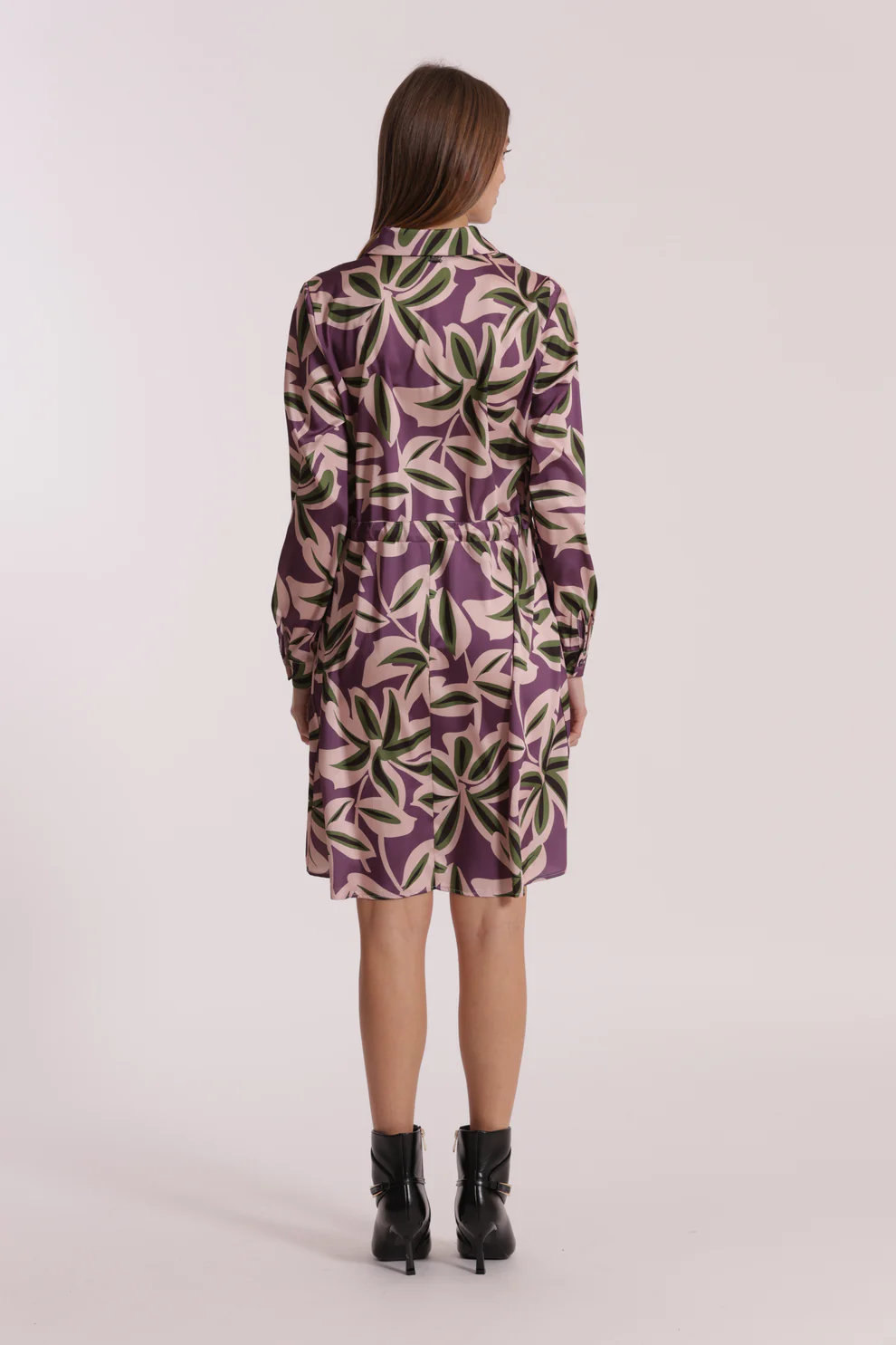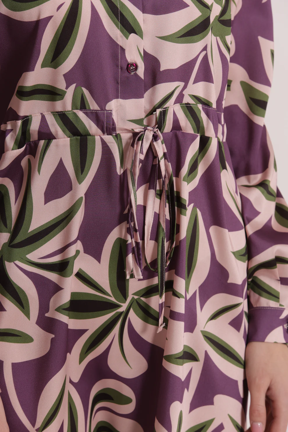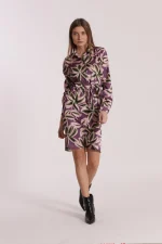 Vestido camisero con estampado de flores, abotonado y con lazo en la cintura para ajustarlo.